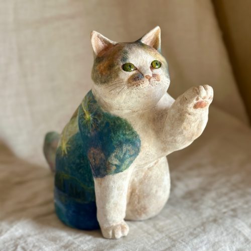 2020年にオーブン粘土を手にして、その面白さに惹かれた事から制作をはじめました。主に猫をモチーフとした作品を制作をしています。作品は自然の景色や、そこに暮らす生き物たちから着想を得ています。