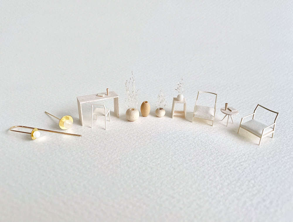建築模型や製図の技法を使って、ドローイングや立体造形など、空間をテーマにした作品を作っています。