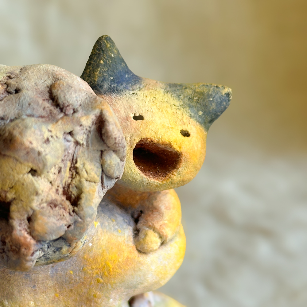 素材|低温陶土、アクリルガッシュ、ニス